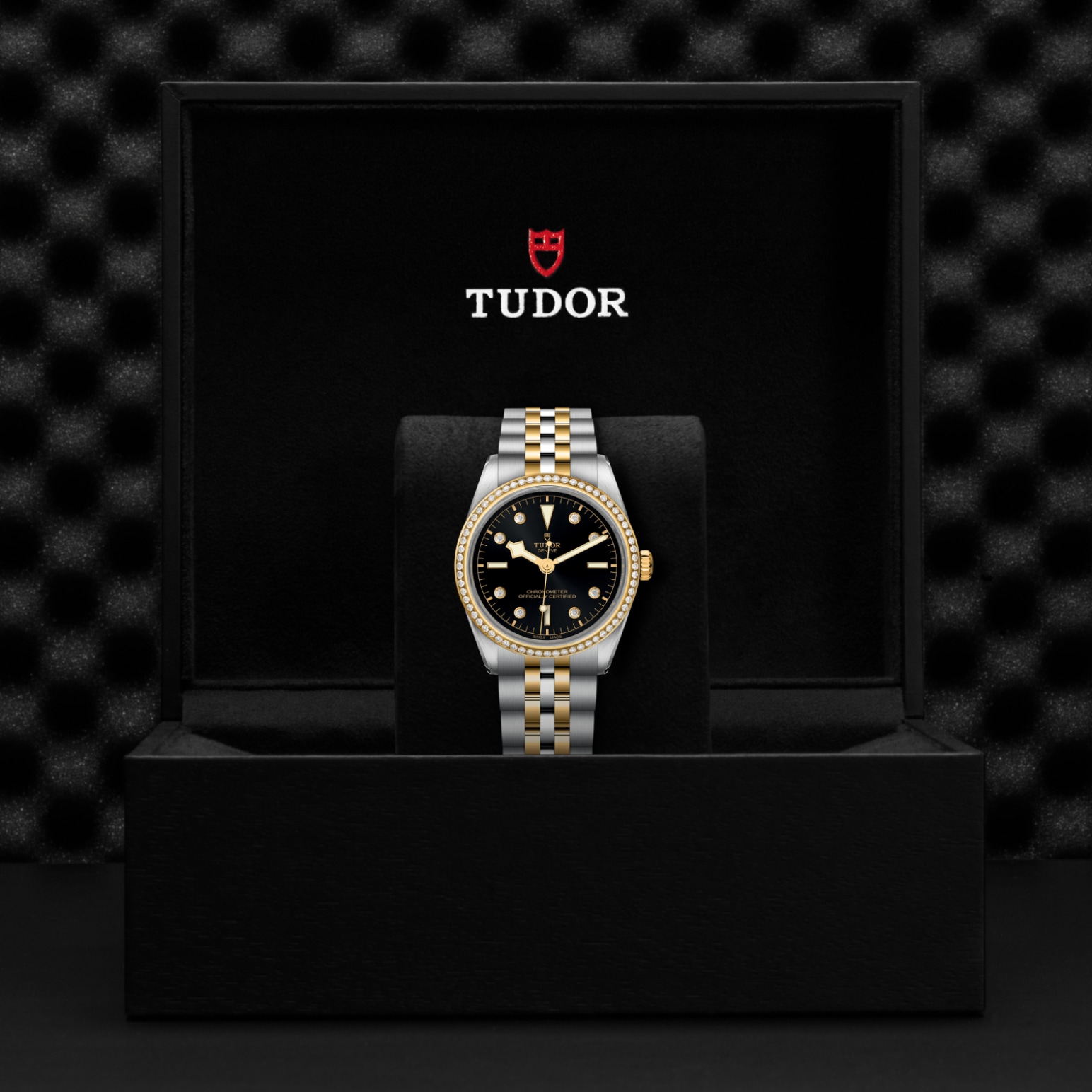 Prime maglie centrali in acciaio o in oro giallo massiccio. Le altre maglie centrali sono costituite da un’anima in acciaio rivestita da 0,2 mm di oro giallo. Chiusura pieghevole TUDOR “T‑fit” con fermaglio di sicurezza. Il logo sul fermaglio è realizzato in oro giallo massiccio