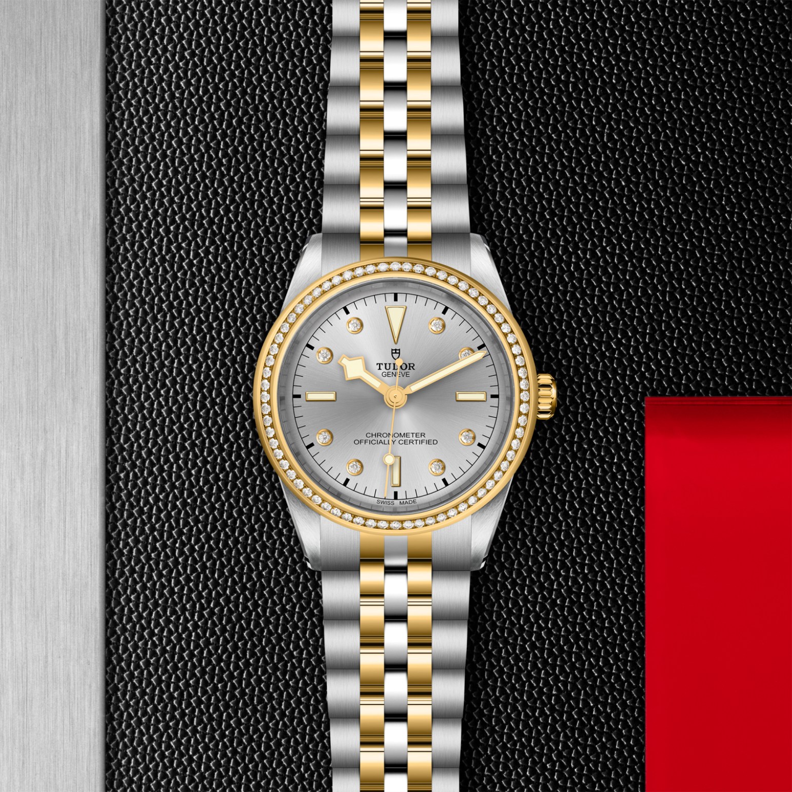Prime maglie centrali in acciaio o in oro giallo massiccio. Le altre maglie centrali sono costituite da un’anima in acciaio rivestita da 0,2 mm di oro giallo. Chiusura pieghevole TUDOR “T‑fit” con fermaglio di sicurezza. Il logo sul fermaglio è realizzato in oro giallo massiccio