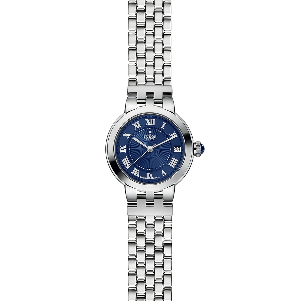 - Corona di carica a vite in acciaio con cabochon blu trasparente