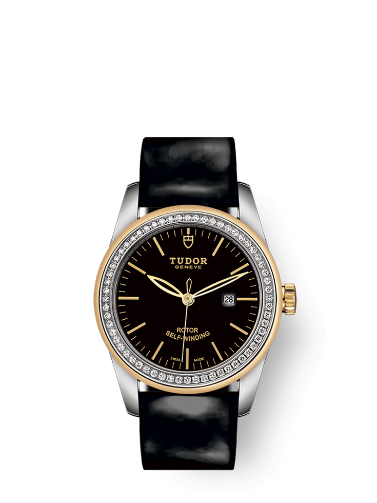Doppia lunetta in acciaio e oro giallo con 60 diamanti, finitura lucida