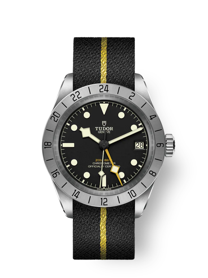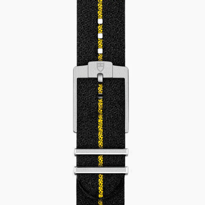 Cinturino in tessuto nero con banda gialla e fibbia ad ardiglione