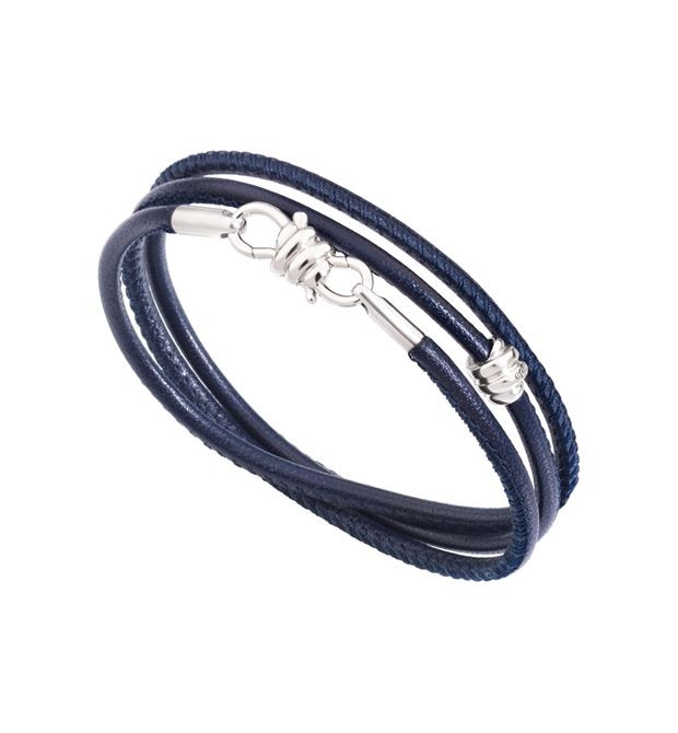Bracciale Nodo con chiusura in argento e cinturino in pelle blu.