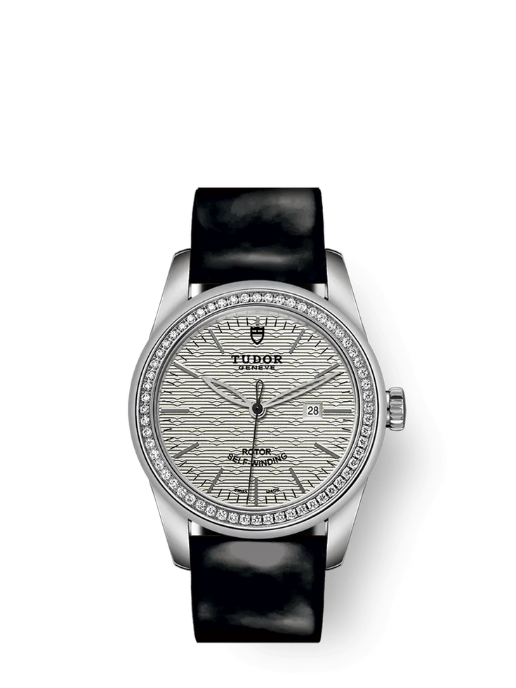 Doppia lunetta in acciaio con 60 diamanti, finitura lucida
